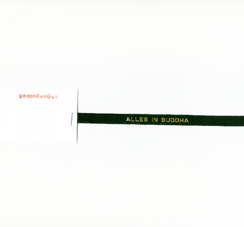 auf Wolle und Baumwolle. Das Bändchen ist auf der Rückseite mit einem Kleber beschichtet, der sich beim Aufbügeln mit dem Untergrund verbindet. Grösse  10mm x 15cm, gold auf schwarz