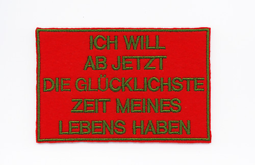 sticker grün auf rot: ich will ab jetzt die gluecklichste zeit meines lebens haben